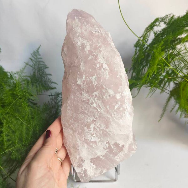 Rozenkwarts geslepen in de vorm van een ruwe punt. Deze liefdevolle steen weegt 3.8 kilo!! en is een prachtige aanwezige steen, die heel mooi staat in ieders interieur.