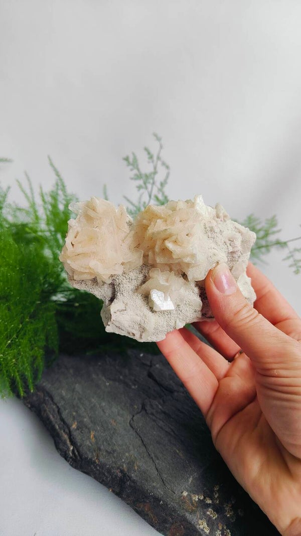 Zeoliet is een verzamelnaam voor verschillende mineralen zoals; Apofyliet, Stilbiet en Prehniet. Deze mooie Zeoliet heeft veel Stilbiet schijfjes.