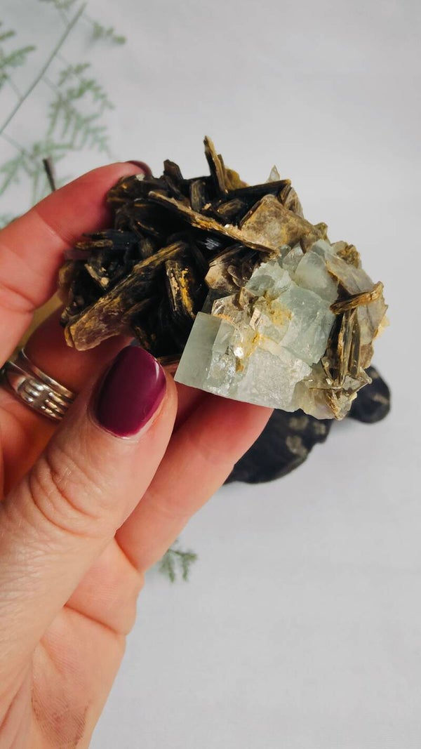 Aquamarijn is een zeldzame edelsteen, deze combinatie in Micca maakt het exemplaar erg mooi.