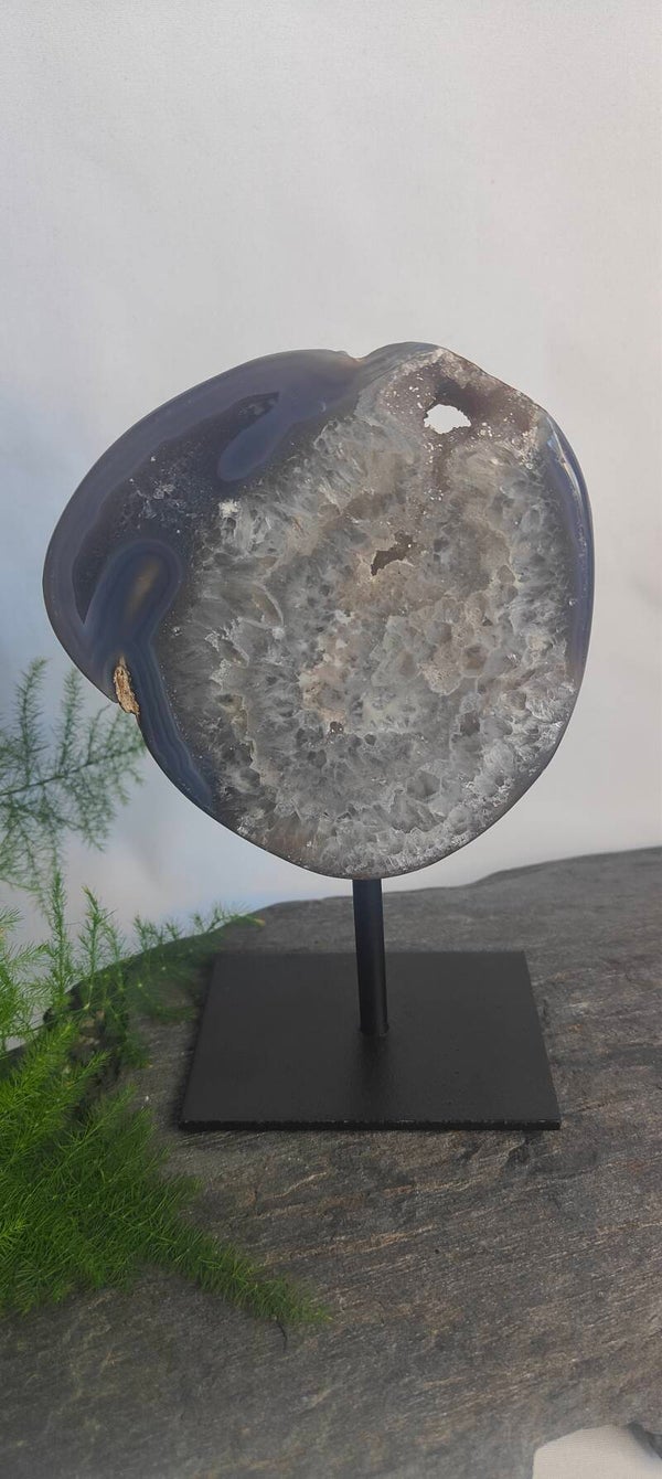 Een mooi en lieve kleine Agaat op standaard. Deze Agaat heeft mooie licht blauwe kleuren die overlopen naar het bruine. De achterkant is licht en robuust van kleur.
