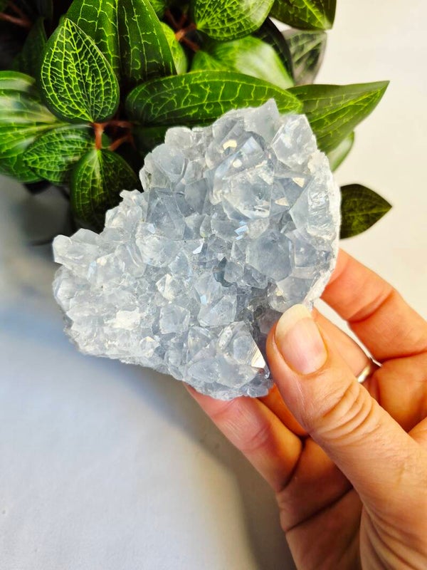 Er bestaan verschillende kleuren Celestien. De blauwe Celestien is de meest favoriete kleur. De edelsteen is ongeveer 65 miljoen jaar geleden ontstaan in holtes en scheuren van afzettingsgesteente.Dit pracht exemplaar geeft een hele fijne energie.