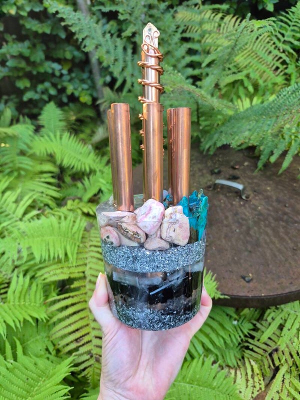 Een Chembuster is een bijzondere verschijning. In deze Chembuster zijn de volgende edelstenen en metalen verwerkt;