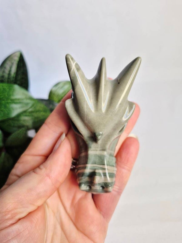 Prachtige Jade drakenkop uit China. De Chinezen noemen deze Jade kleur "Nightdragon Jade".