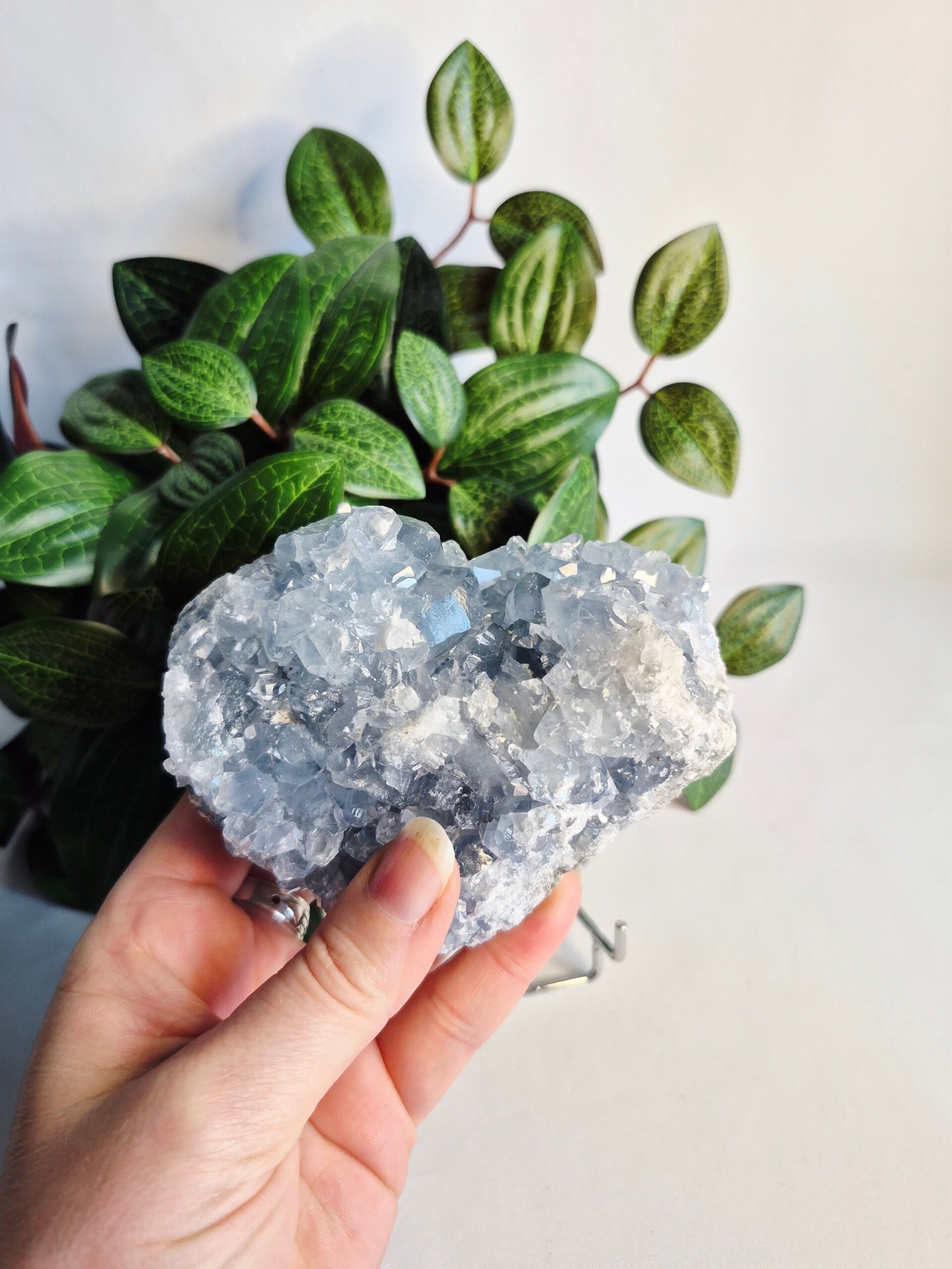 Er bestaan verschillende kleuren Celestien. De blauwe Celestien is de meest favoriete kleur. De edelsteen is ongeveer 65 miljoen jaar geleden ontstaan in holtes en scheuren van afzettingsgesteente.Dit pracht exemplaar geeft een hele fijne energie.