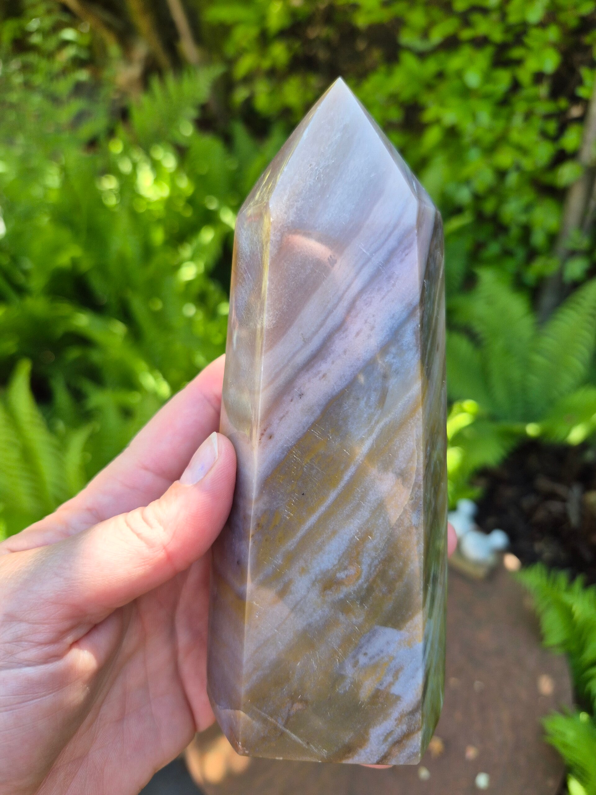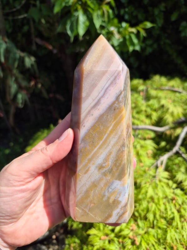 Oceaan Jaspis geslepen in een obelisk. Jaspis kan verschillende soorten kleuren hebben, deze is mooi roze tot blauw.